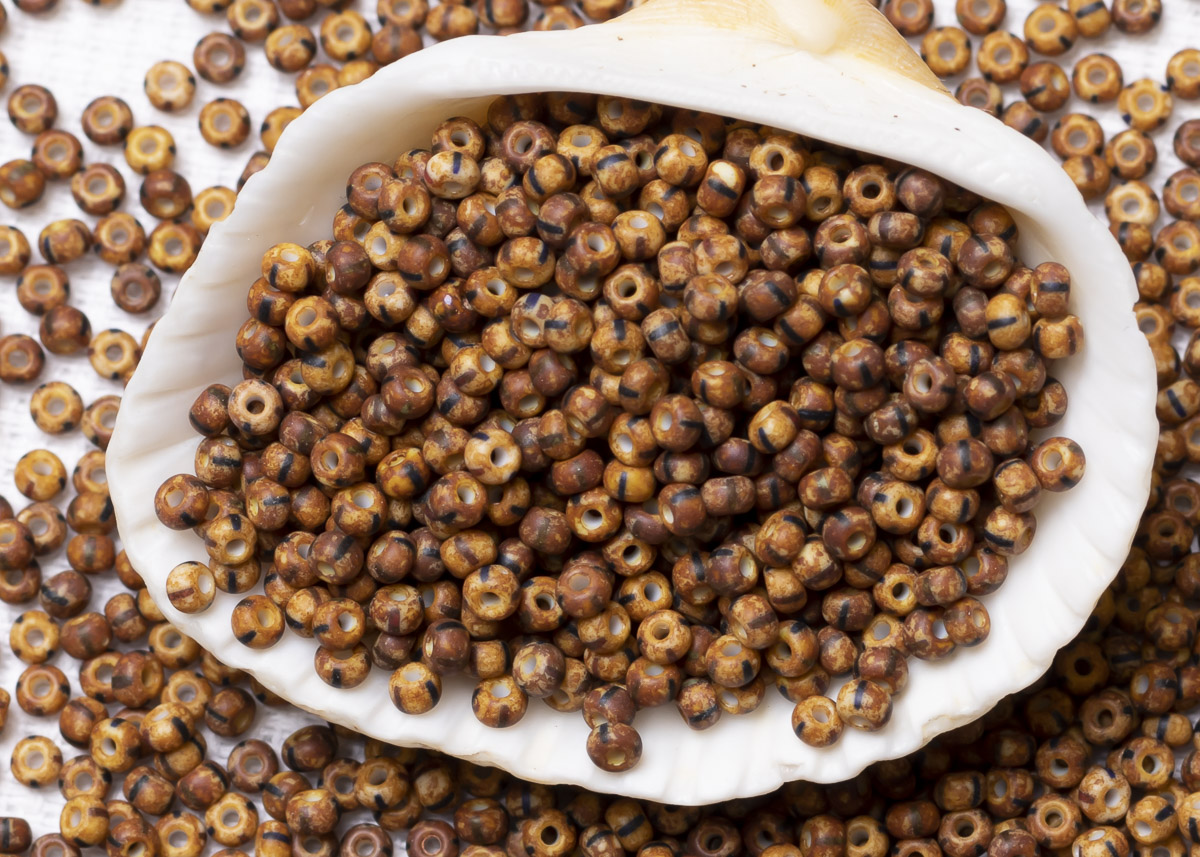 Бисер Чехия круглый 10/0 50г OT930m коричневый, непрозрачный, травертин матовый